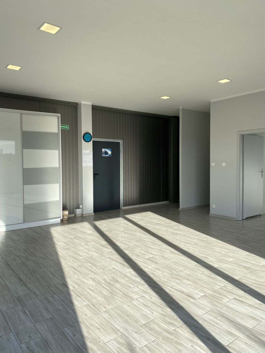 Wnętrze cechuje się bezpyłową posadzką oraz wysokim sufitem - 6,0 m przy głównej części i 7,7 m w najwyższym punkcie, co zapewnia dużą funkcjonalność i możliwość składowania nawet najbardziej wymagających towarów. Ogrzewanie gazowe gwarantuje komfort pracy przez cały rok, a moc energetyczna sprosta wszelkim potrzebom Twojej działalności.