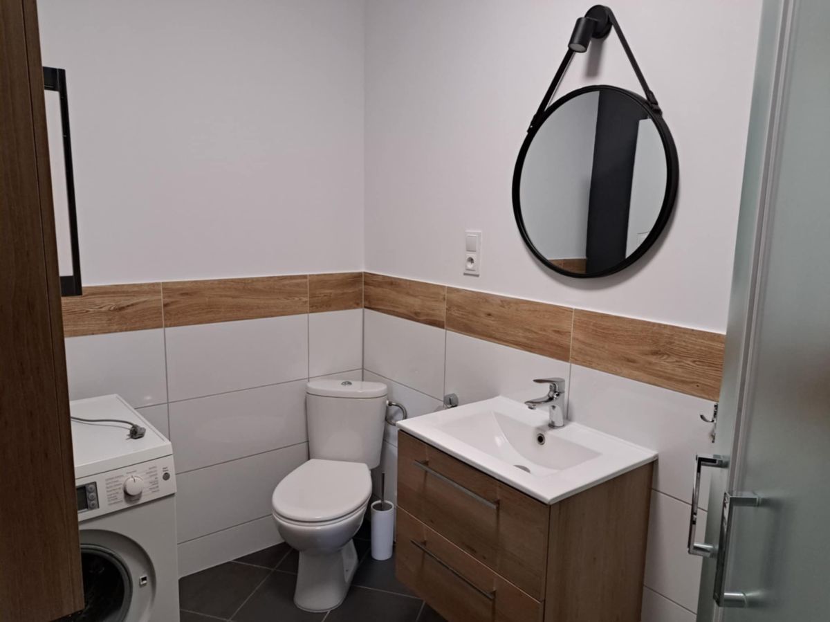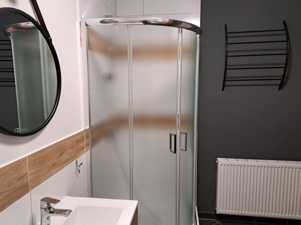 Na piętrze znajduje się kompleks czterech w pełni umeblowanych i wyposażonych mieszkań, każdy z indywidualnym kotłem gazowym. Łącznie powierzchnia użytkowa mieszkań to około 240 m², z przestronnymi pomieszczeniami i wygodnymi skosami. Dwa z nich wyposażone są w klimatyzację, a wszystkie posiadają podstawowe sprzęty AGD - pralkę, lodówkę i kuchenkę. Każdy lokal ma osobne przyłącza gazowe i elektryczne, co zapewnia pełną niezależność i komfort użytkowania. Dodatkowo, wszystkie lokale podłączone są do odrębnych podliczników na wodę, co ułatwia rozliczenia i zarządzanie kosztami.